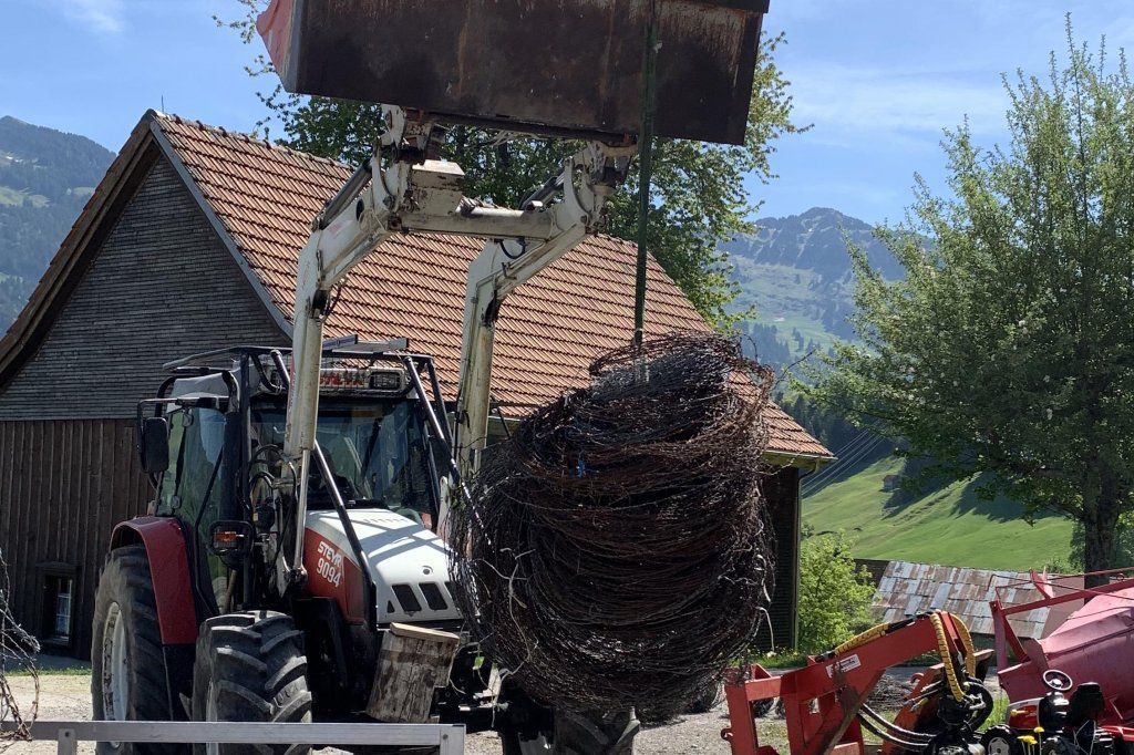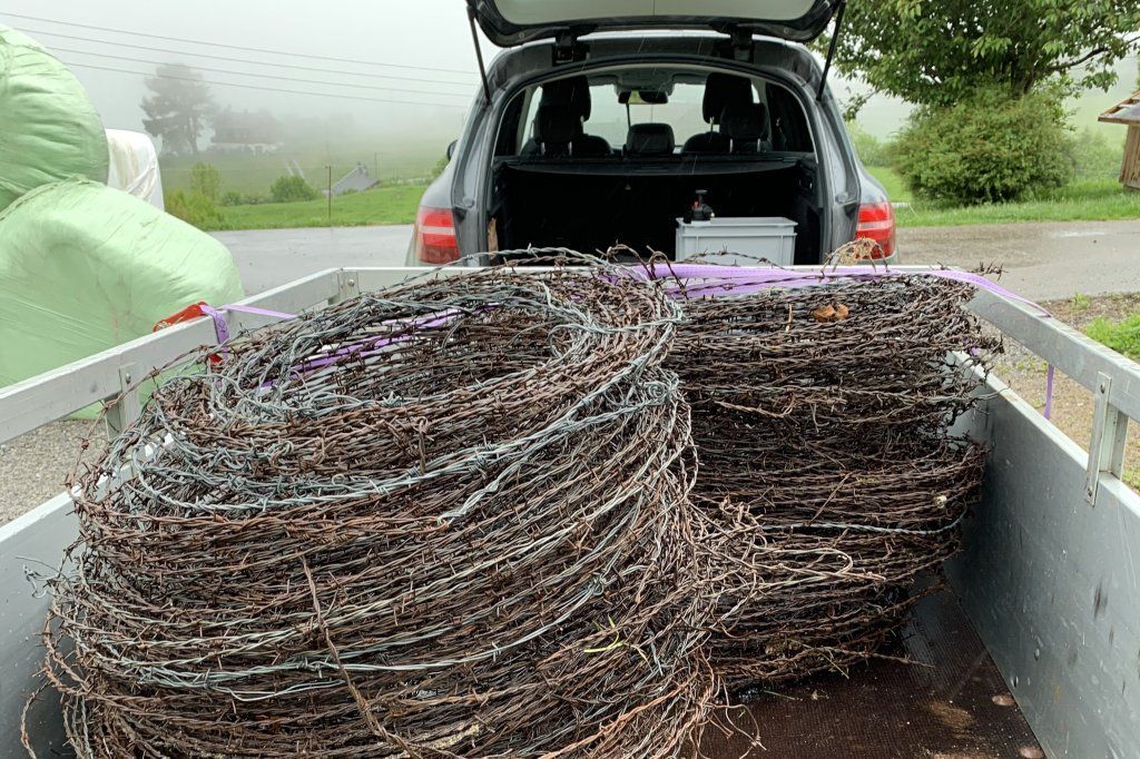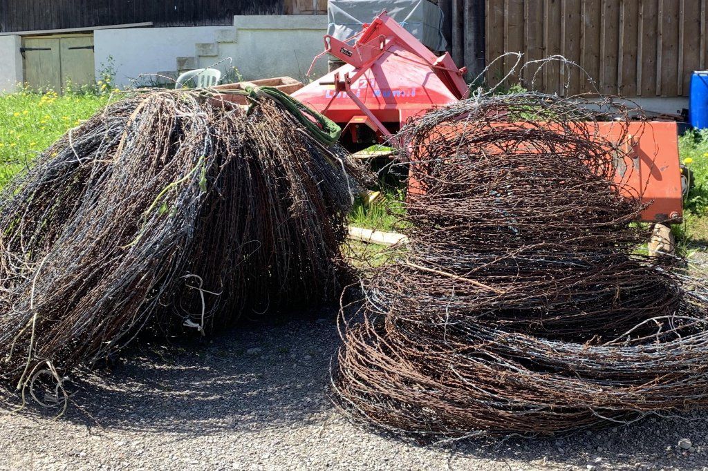 Auf unseren Wanderungen entdeckten wir schon vor vielen Jahren aufgerollten Stacheldraht, der seine Zweckbestimmung erfüllt hatte und am Wegrand auf das Entsorgen wartete. Da ist die Idee entstanden, aus dem Draht etwas Neues zu schaffen. Auf ein Inserat in der Tierwelt hin haben wir zahlreiche Angebote von Alpbetrieben erhalten. Gegen ein kleines Entgelt an die Betriebe holen wir den Draht ab und "entsorgen" ihn für sie.